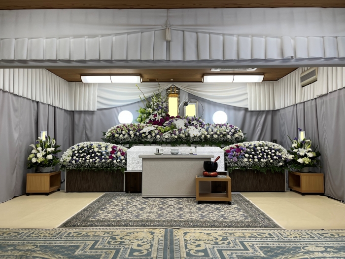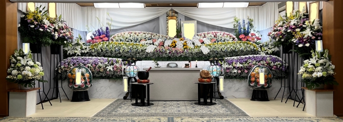 ではの花祭壇プランをご用意しております。季節のお花を用いた祭壇や、故人様のお人